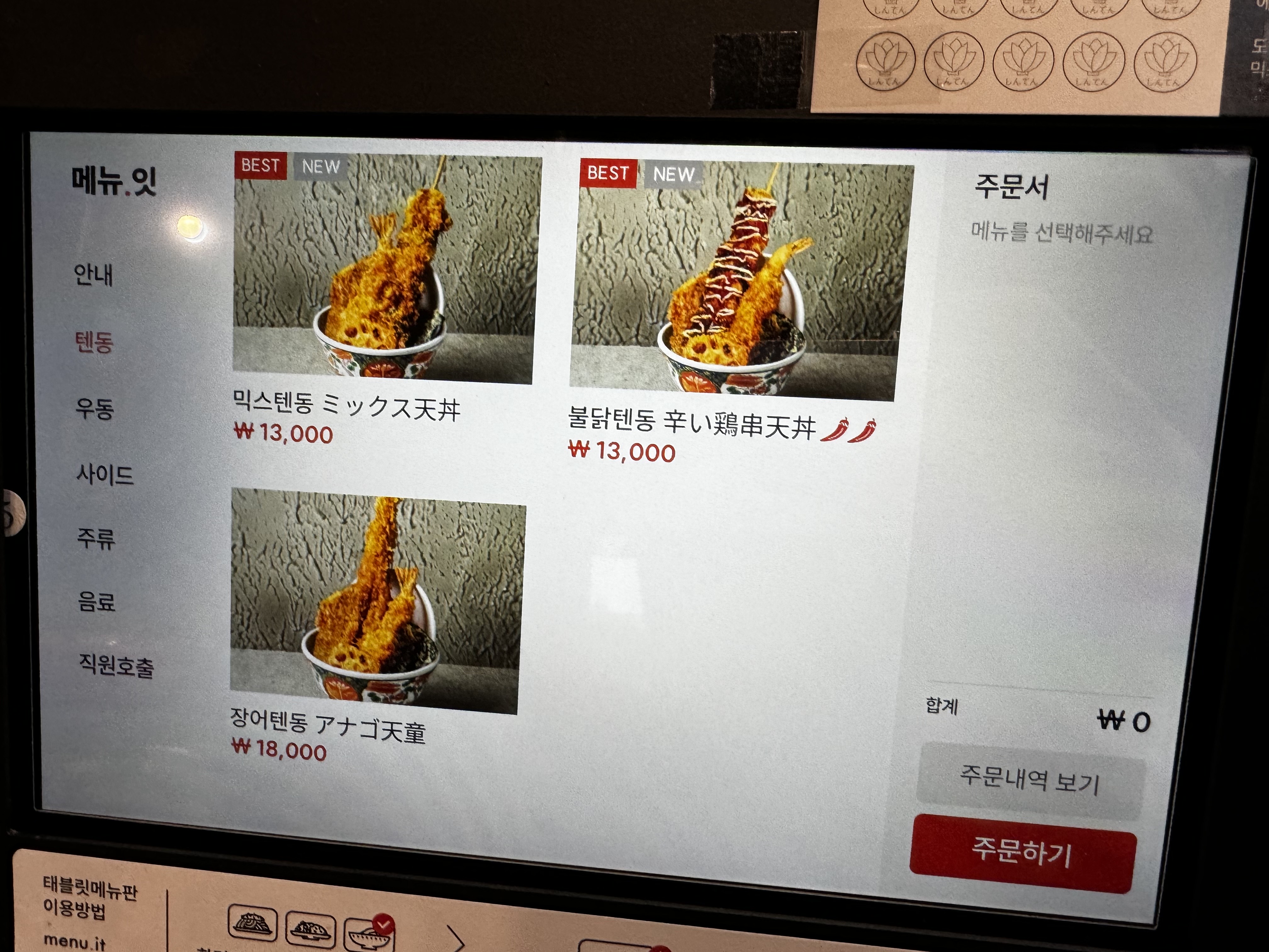 우선 주변에 갈 수 있는 텐동집 중에 가장 가까워서 가게 되었습니다. 기본 신텐을 주문했습니다.